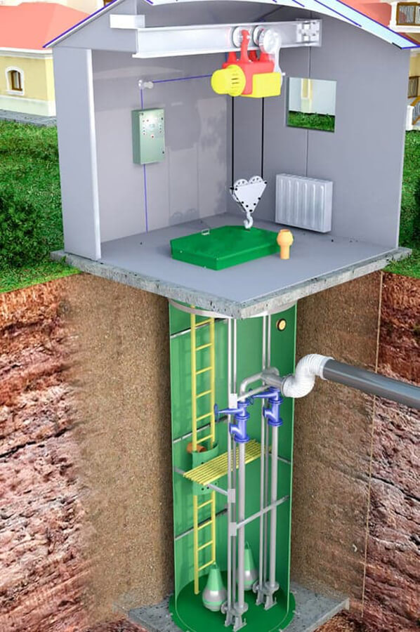 Инженерное сооружение данного типа — это современная технологическая установка, которая обеспечивает принудительную транспортировку канализационных стоков посредством погружных насосных агрегатов. Характерной чертой конструкции выступает наличие специального наземного блока, который существенно упрощает процесс технического обслуживания оборудования.
