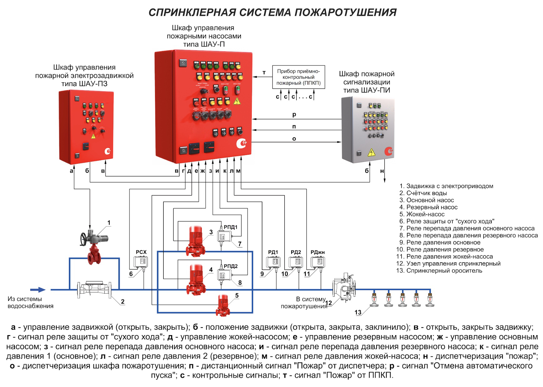 Шкафы управления насосами соответствуют техническому регламенту о требованиях пожарной безопасности (ФЗ от 22.07.2008 № 123‑ФЗ, ГОСТ Р 53325‑2012). Реализованы следующие функции: